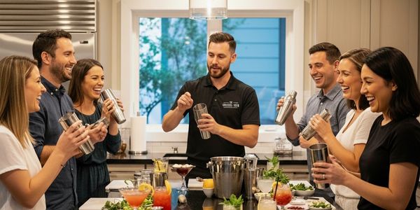 Our cocktail class is a full party experience, not just a demo. A professional bartender handles all setup and cleanup while teaching hands-on techniques. Guests mix and enjoy top-notch drinks as they hear the fascinating backstories behind each cocktail—not just the recipe.
