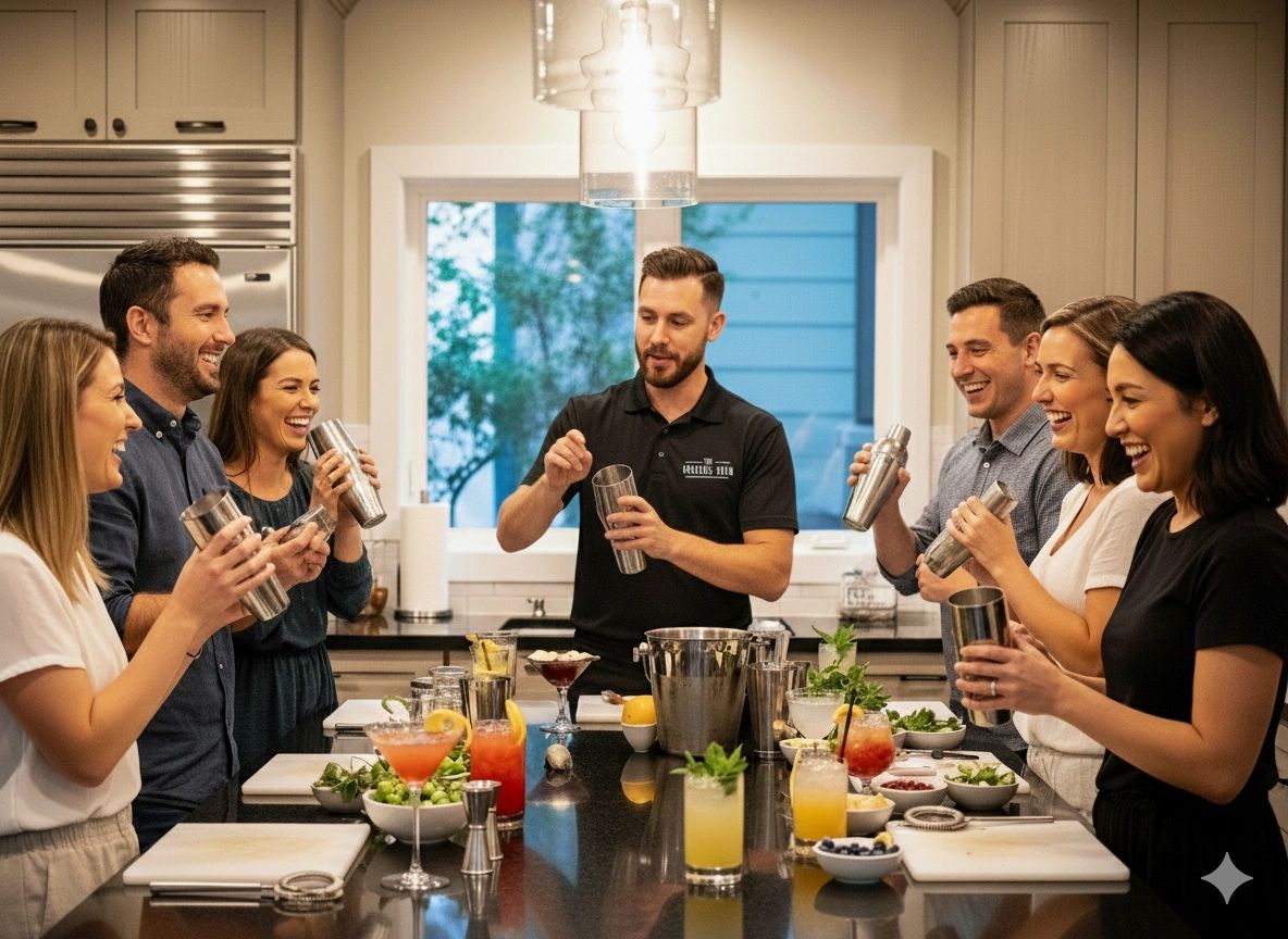 Our cocktail class is a full party experience, not just a demo. A professional bartender handles all setup and cleanup while teaching hands-on techniques. Guests mix and enjoy top-notch drinks as they hear the fascinating backstories behind each cocktail—not just the recipe. The lively atmosphere keeps everyone laughing, learning, and celebrating from the first shake to the final sip.